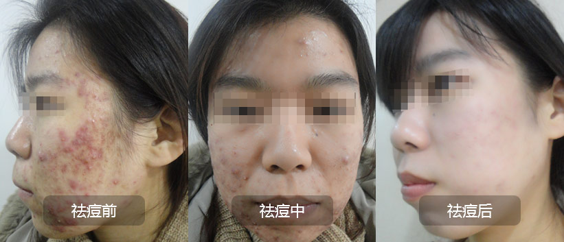 通过中度痘痘治疗,解决细菌感染和毛囊壁过度角化炎症反应等问题,阻止细菌繁殖和炎症进一步发展。