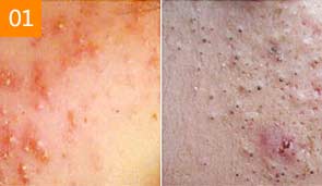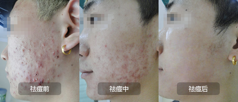 通过重度痘痘治疗,解决毛囊壁破裂导致痤疮正常组织突变问题,抚平痤疮皮损。